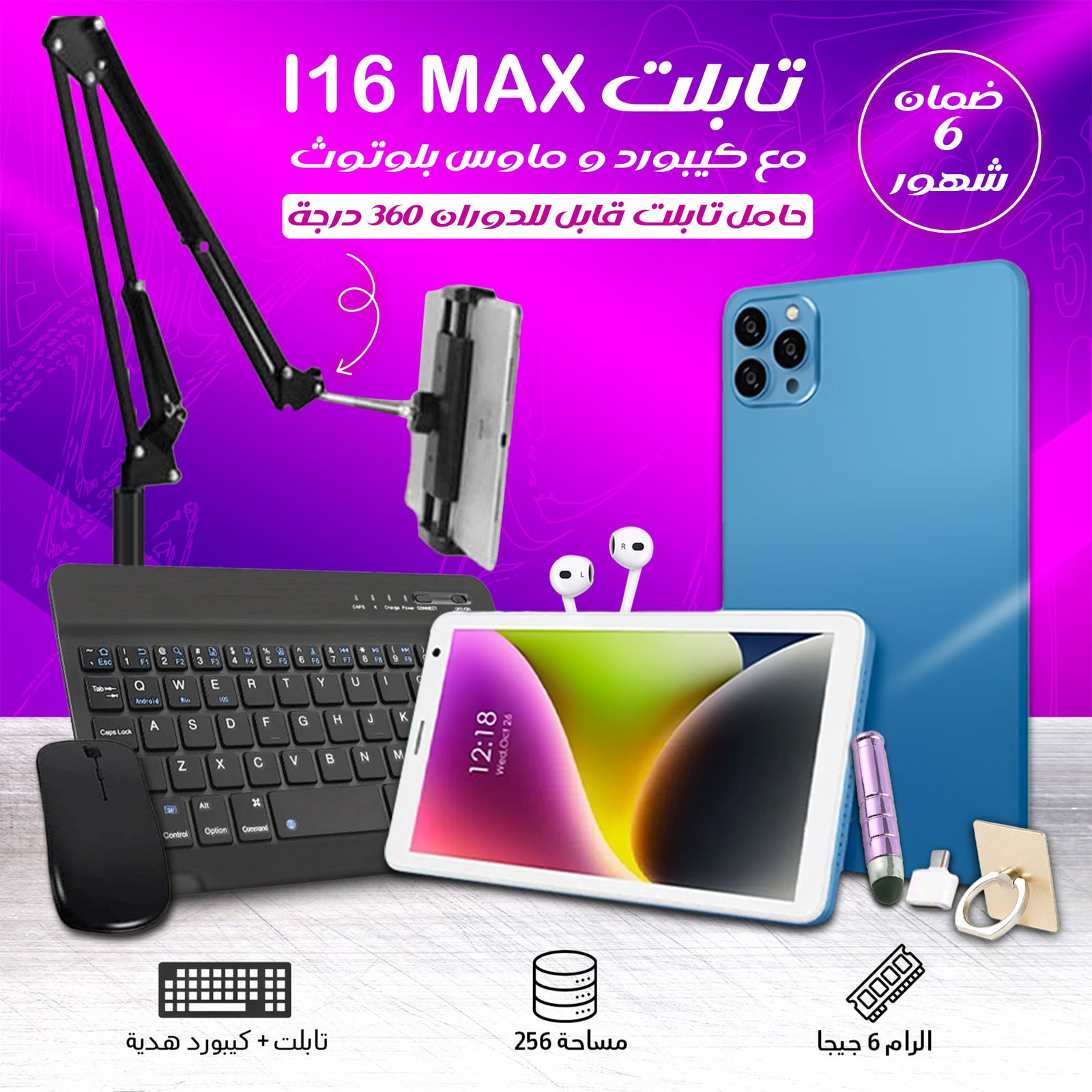 ما تشيل هم الزاوية! حامل التابلت القابل للدوران يضبط لك الوضعية اللي تبيها, اطلبه الحين.