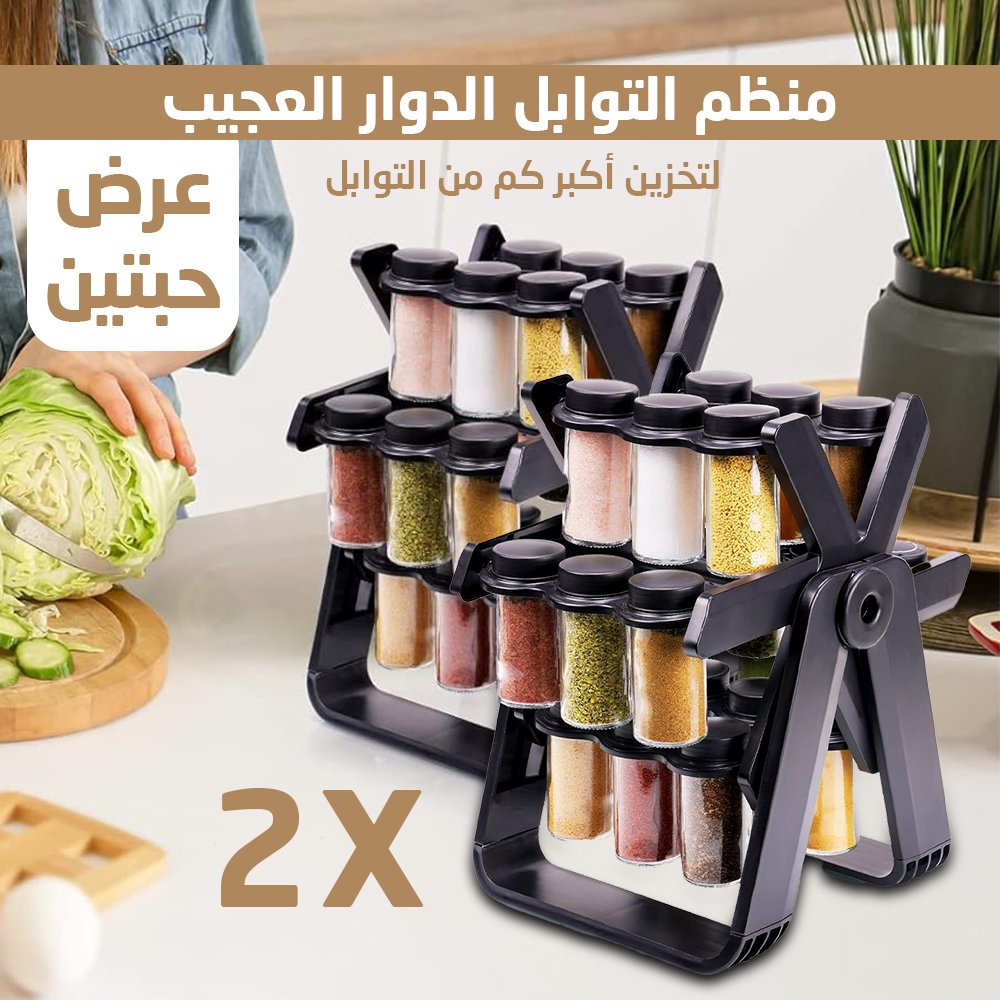 • اكتسب طهيك لمسة سحرية مع “منظم التوابل الدوار”. احصل على حبتين الآن بسعر خاص واستمتع بتنظيم توابل مطبخك بأناقة.
