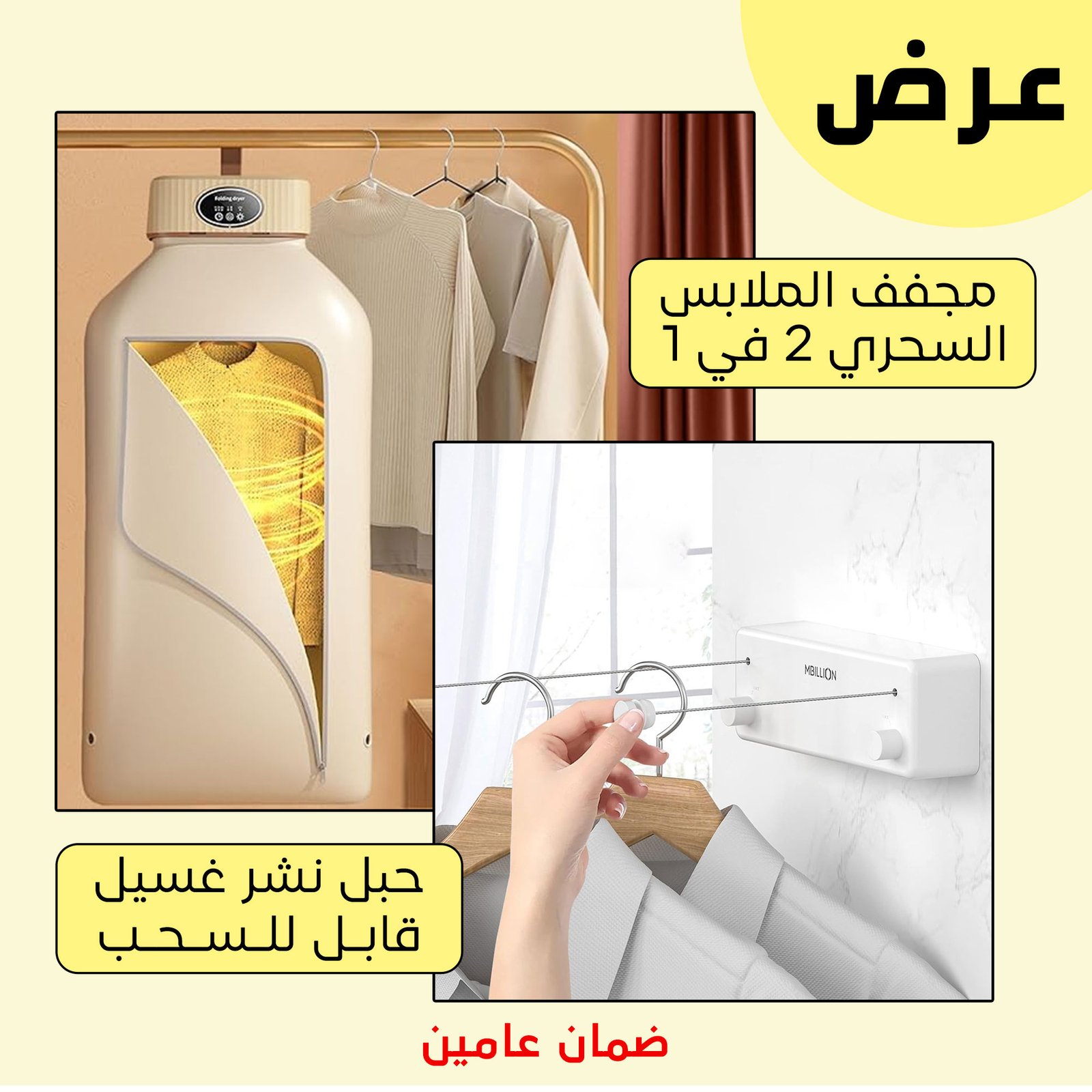 مميزات مجفف الملابس السحري 2 في 1 بضمان عامين: