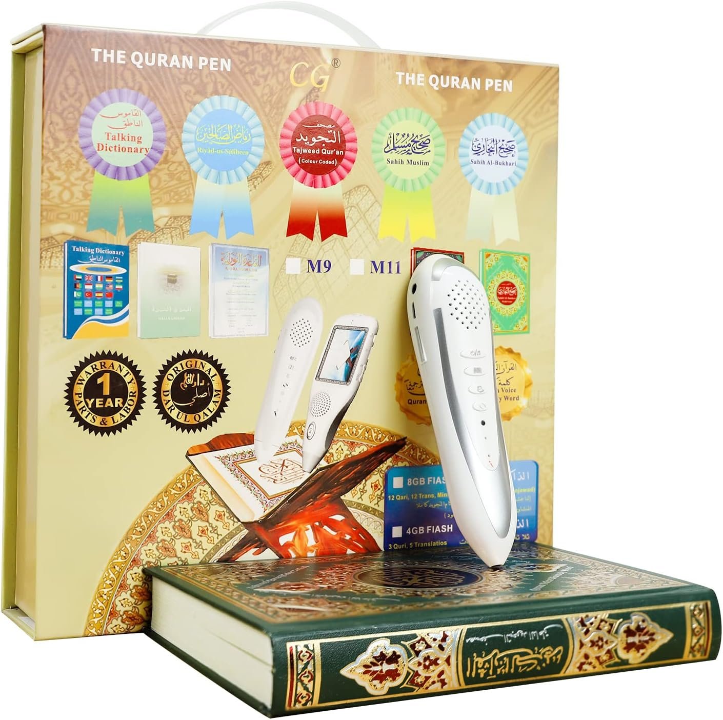 • يحتوي القلم على( القرآن الكريم كاملاً بصوت 16 قارئاً – رياض الصالحين وحصن المسلم صوتيًا – صحيح البخاري وصحيح مسلم صوتيًا – التفسير الصوتي بعدة لغات – أسماء الله الحسنى صوتيًا – أناشيد اسلامية – أدعية وأذكار صوتية – القاعدة النورانية لتعليم القراءة والكتابة واحكام التجويد)