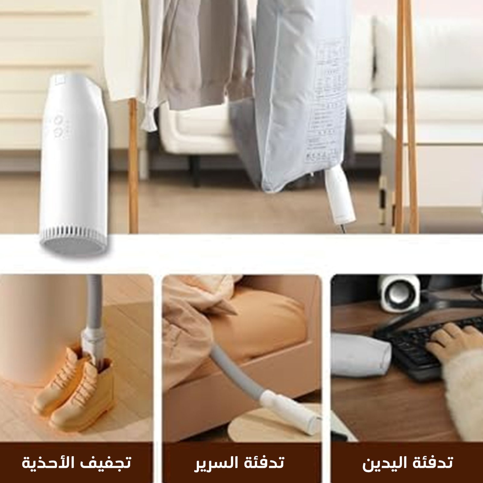 • مع مجفف الملابس والأحذية المحمول، جففها بسرعة ومن غير ما تنتظر مع مجفف الملابس و الاحذية المحمول اللي وفرناه اليوم، لا يفوتك.
